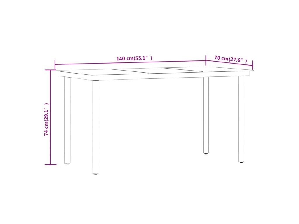 - Rozměry stolu: 140 x 70 x 74 cm (D x Š x V)