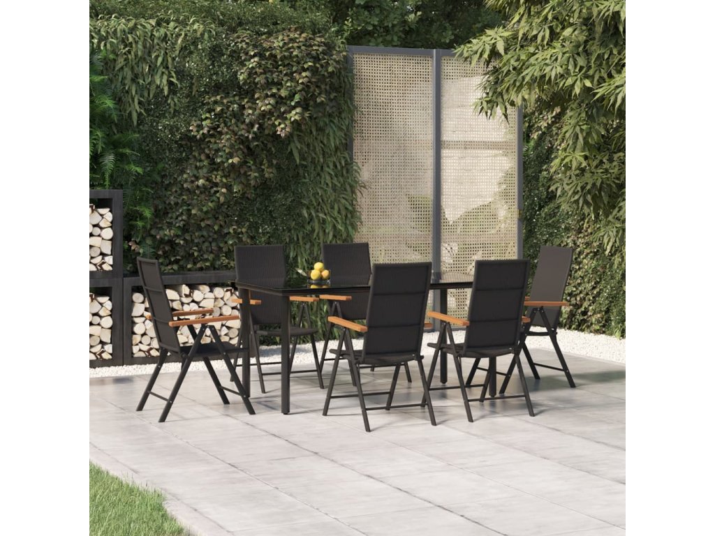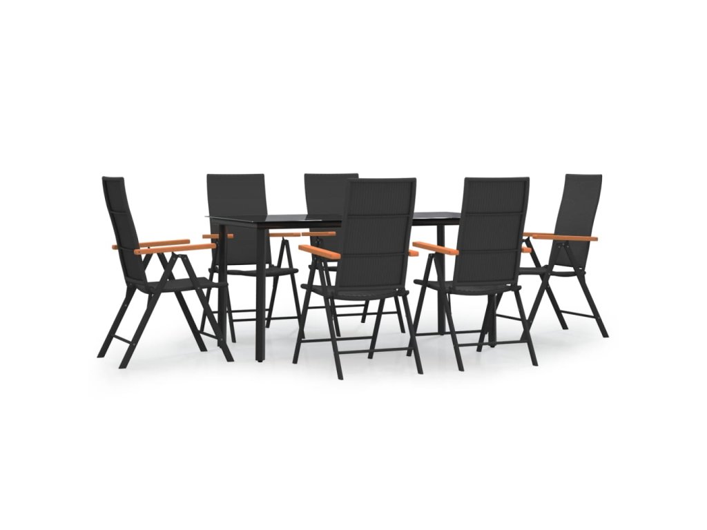 7dílný zahradní jídelní set černý a hnědý polyratan 3156521