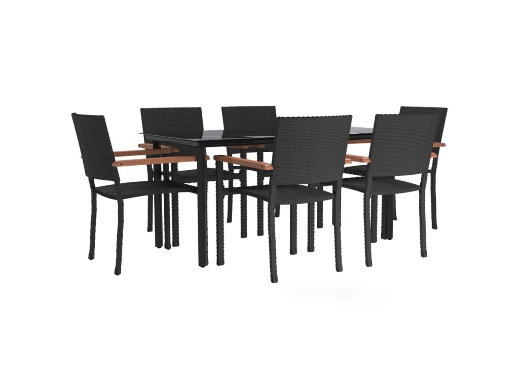 - Materiál: polyethylen s ratanovým vzhledem, masivní akáciové dřevo, práškově lakovaná ocel