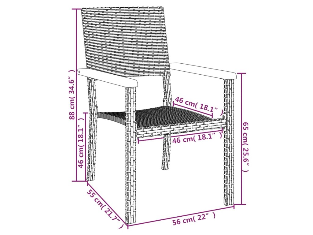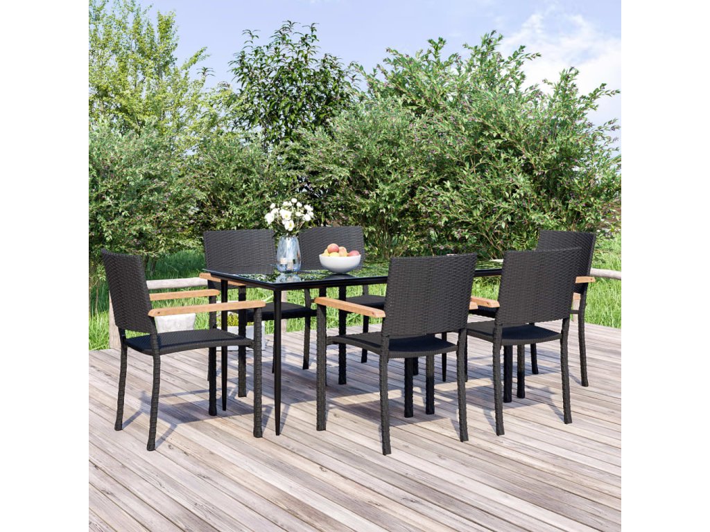- Materiál: polyethylen s ratanovým vzhledem, masivní akáciové dřevo, práškově lakovaná ocel