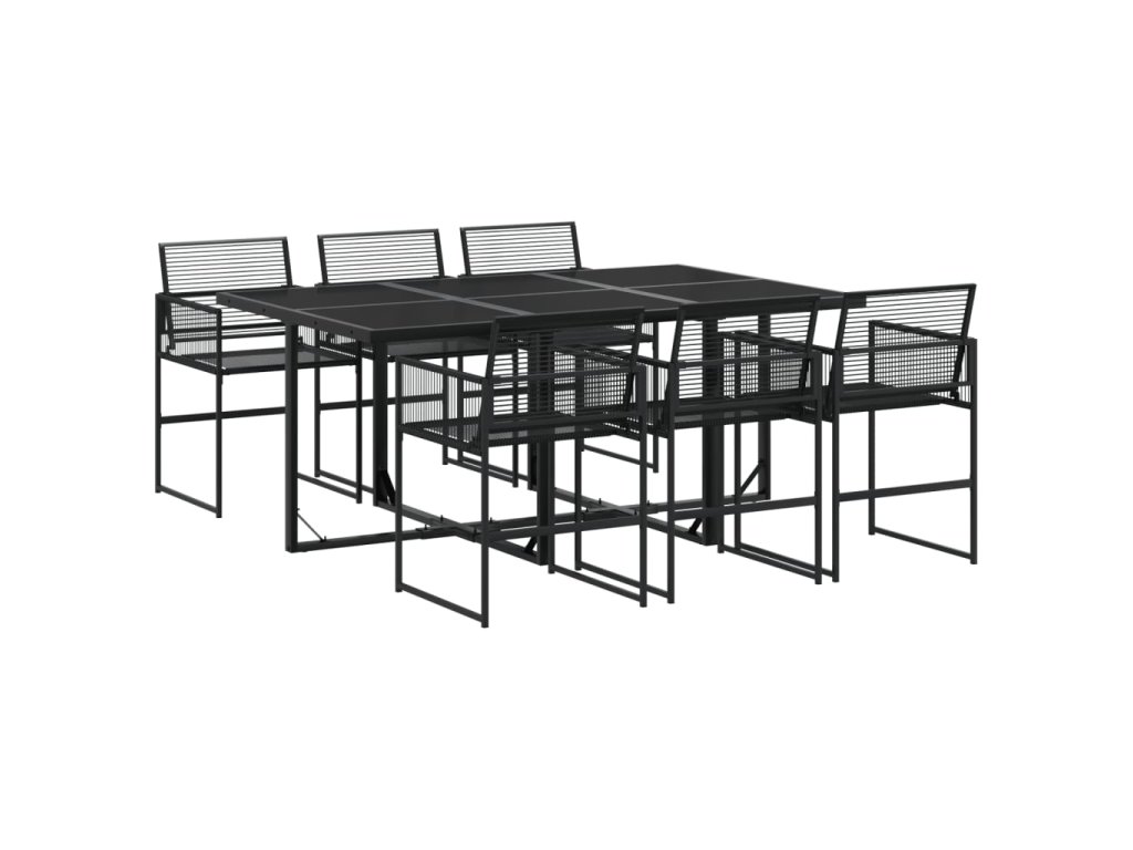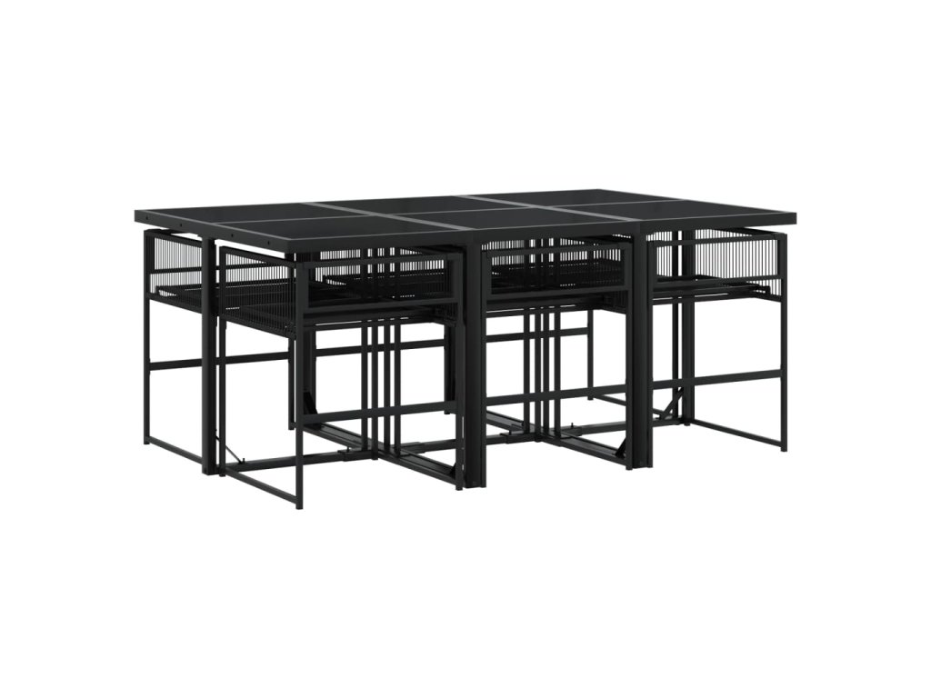 7dílný zahradní jídelní set černý polyratan 3295034