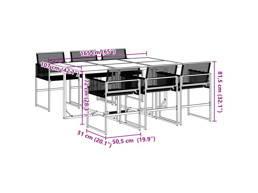 - Robustní a stabilní rám: Ocelový rám s práškovým nástřikem zajišťuje, že zahradní nábytek je pevný a stabilní pro každodenní venkovní použití.