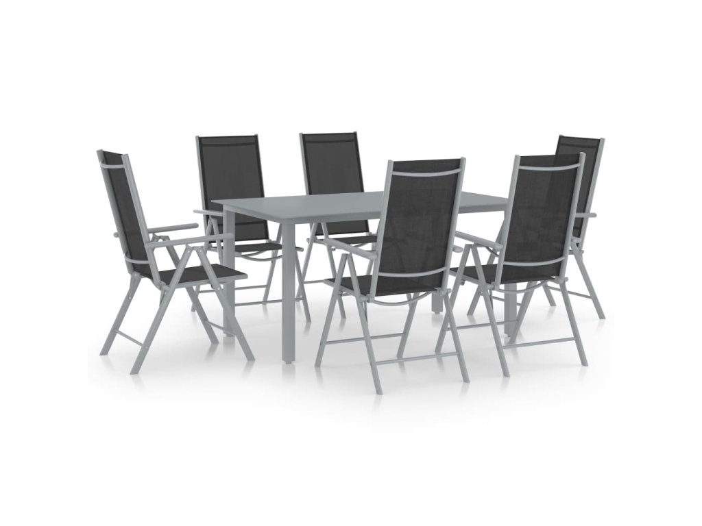 7dílný zahradní jídelní set hliník stříbrno-černý 3070636
