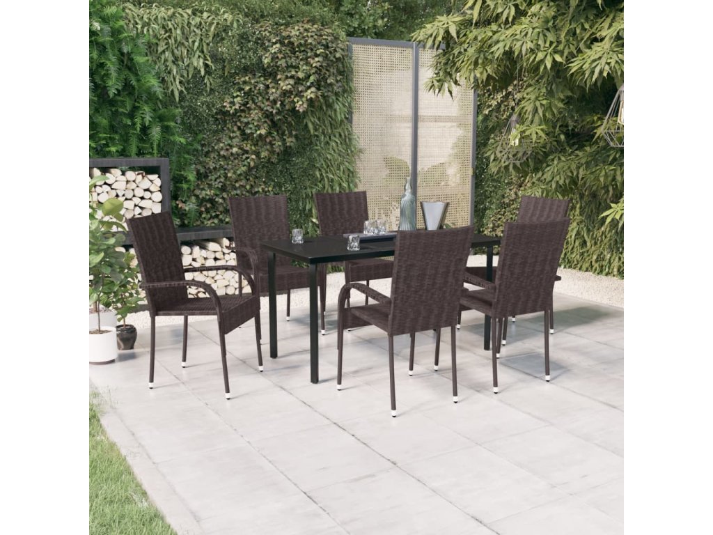 7dílný zahradní jídelní set hnědočerný 3099386