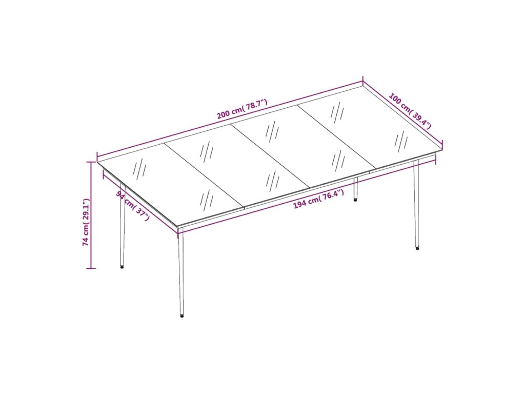 - Rozměry: 200 x 100 x 74 cm (D x Š x V)