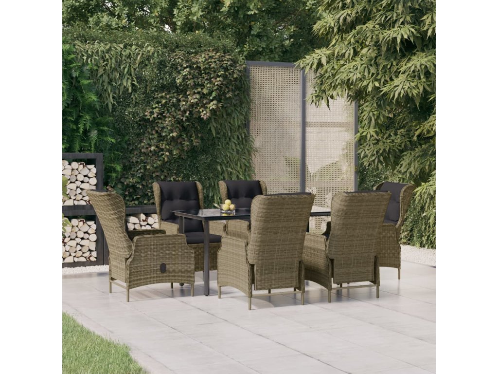 7dílný zahradní jídelní set hnědý polyratan 3156799