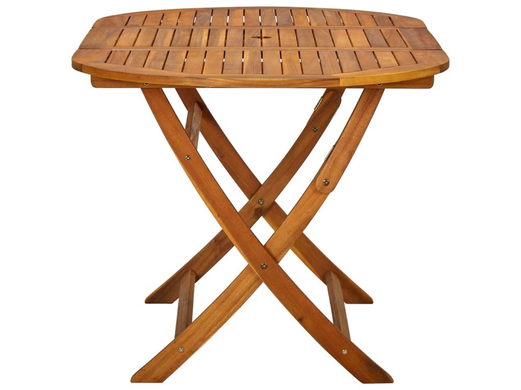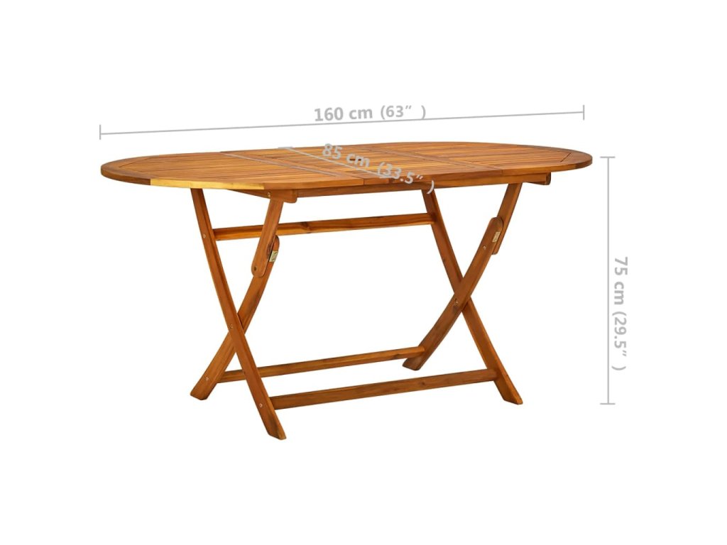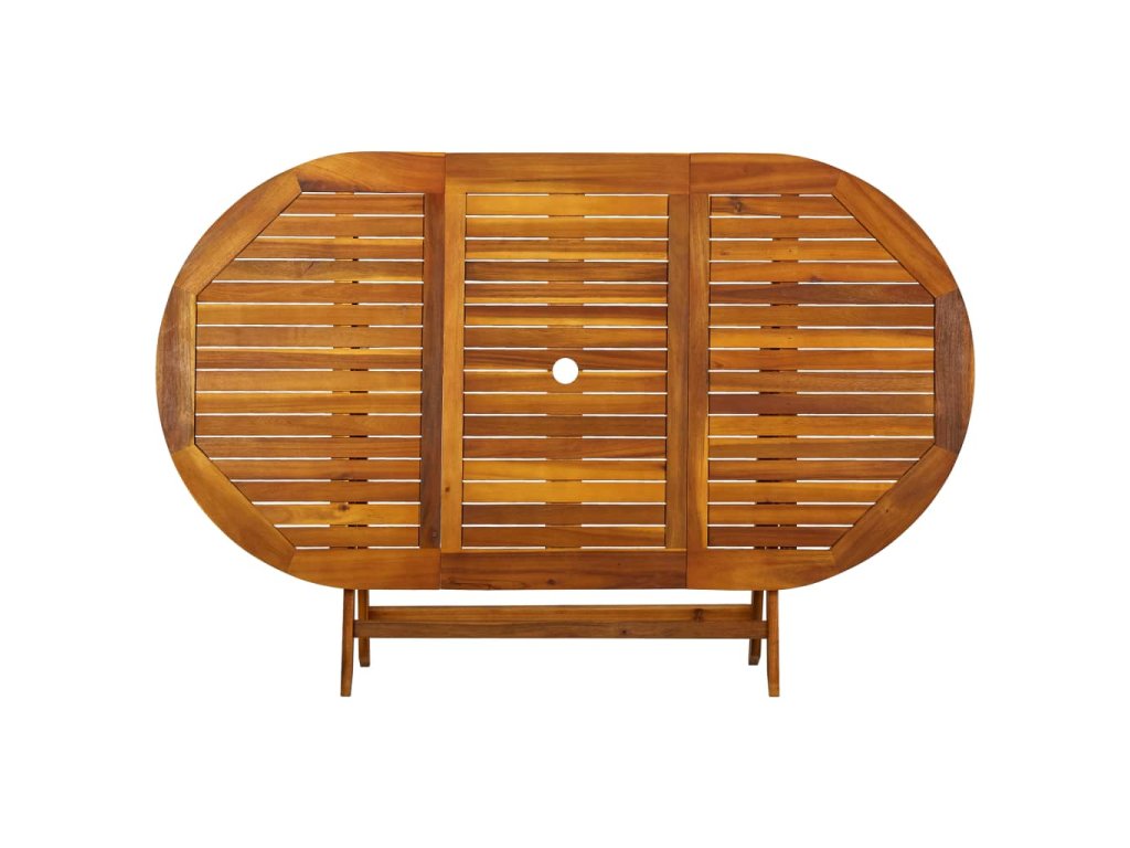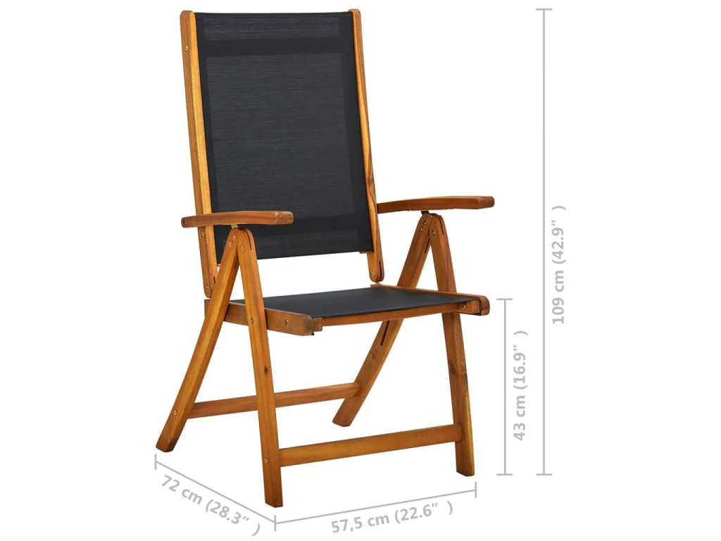 Náš set dřevěného zahradního nábytku na vaší zahradě, terase nebo dvorku zaujme na první pohled. Jídelní stůl je vyrobený z vysoce kvalitního akáciového dřeva. Akácie je tvrdé tropické dřevo, které je odolné vůči povětrnostním vlivům a má dlouhou životnost. Povrch ošetřený tmavým olejovým nátěrem se snadno čistí vlhkým hadříkem. Židle lze nastavit do 5 poloh a mají příjemné textilenové čalounění, které je odolné vůči povětrnostním vlivům a na dotek měkké, je tudíž snadné se v těchto židlích pohodlně uvelebit. Pokud je zrovna nepoužíváte, můžete stůl i židle složit, abyste ušetřili místo.