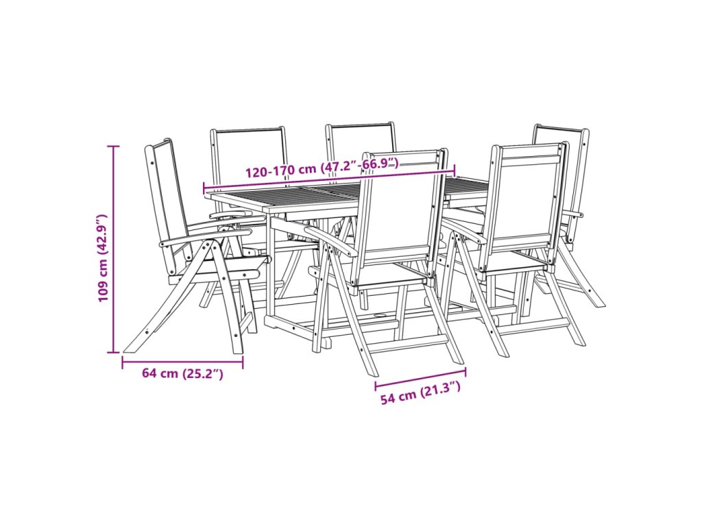 7dílný zahradní jídelní set masivní akáciové dřevo a textilen 3279283