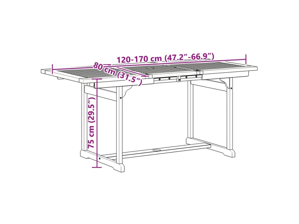 - Praktický design: Tento zahradní stůl má speciální design, takže ho můžete prodloužit, když potřebujete víc místa. Ve stolní desce je otvor pro slunečník, takže můžete snadno vytvořit stinné místo.