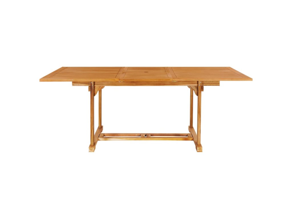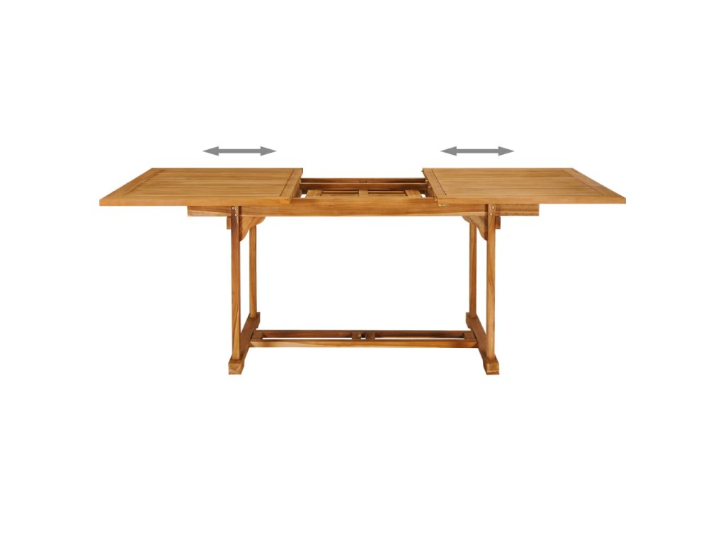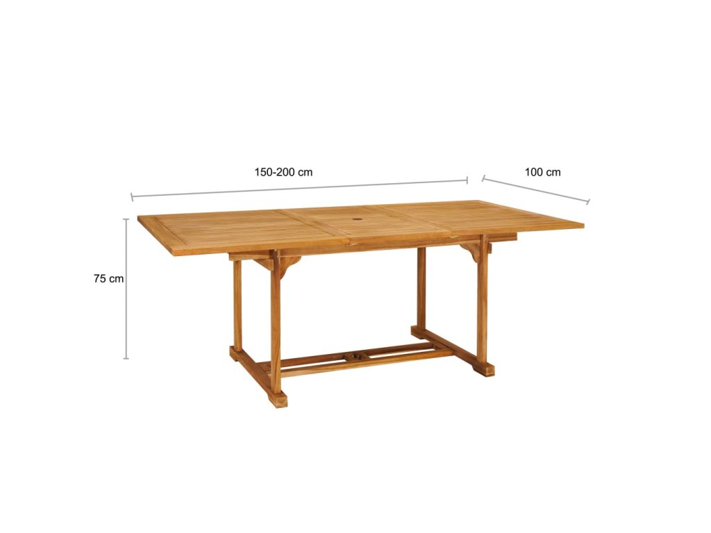 Nábytek odolává vlhkosti a hmyzu. Je ošetřený krásnou povrchovou úpravou, která dřevu dává teplou barvu. Jídelní stůl se speciálním designem je možné rozšířit až o maximálně 200 cm, pokud je zapotřebí více místa. Má také otvor pro deštník, který poskytuje ochranu před sluncem. Židle, které můžete složit, když je nepoužíváte, vám poskytnou pohodlí a skvělé místo, kde můžete trávit čas s rodinou a přáteli. Tuto sadu lze navíc snadno čistit vlhkým hadříkem.