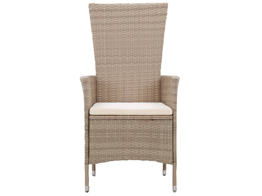Jídelní stůl je zhotovený z masivního akáciového dřeva, takže je pevný a stabilní. Olejem napuštěný povrch vám umožní používat tento stůl i ve venkovních prostorech. Jídelní židle mají ocelový rám, který je opletený klimaticky odolným PE ratanem, jsou proto bytelné a snadno se udržují čisté. Stisknutím tlačítka na boku můžete sklopit opěradlo. Každá židle má hustě polstrovanou podušku, abyste si při odpočinku mohli dopřát mimořádný komfort.