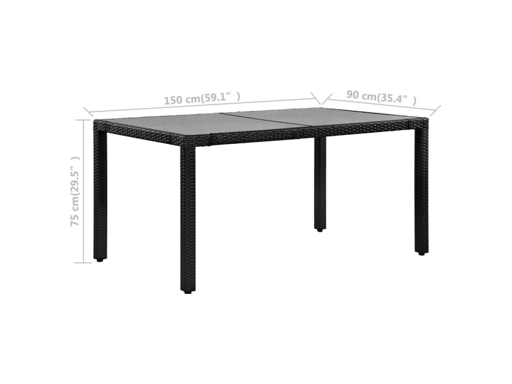- Materiál: PE (polyetylenový) ratan + ocelový rám + stolní deska z tvrzeného skla