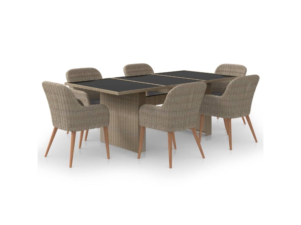 7dílný zahradní jídelní set polyratan hnědý 3059483