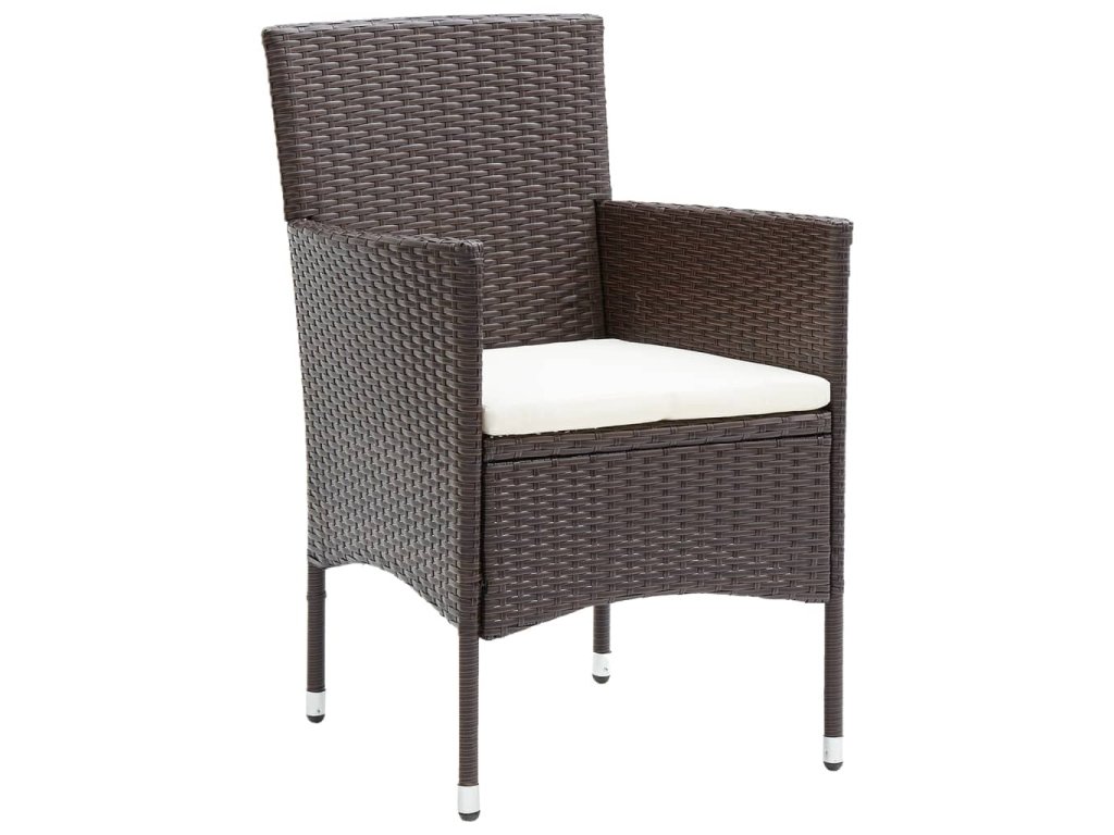 Jídelní stůl je vyrobený z masivního akáciového dřeva, takže je pevný a stabilní. Olejem napuštěný povrch umožňuje tento stůl používat i ve venkovních prostorech. Jídelní židle mají ocelový rám, který je opletený klimaticky odolným PE ratanem, jsou proto bytelné a dají se bez námahy udržet v čistotě. Každá židle má hustě polstrovanou podušku, abyste si při odpočinku mohli dopřát mimořádný komfort.