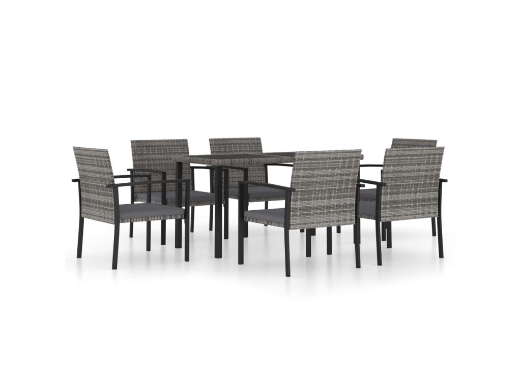7dílný zahradní jídelní set polyratan šedý 3065714