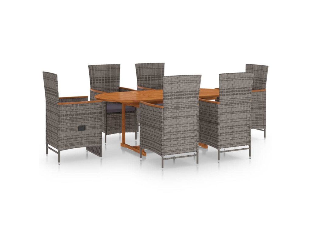 7dílný zahradní jídelní set polyratan šedý 3070770