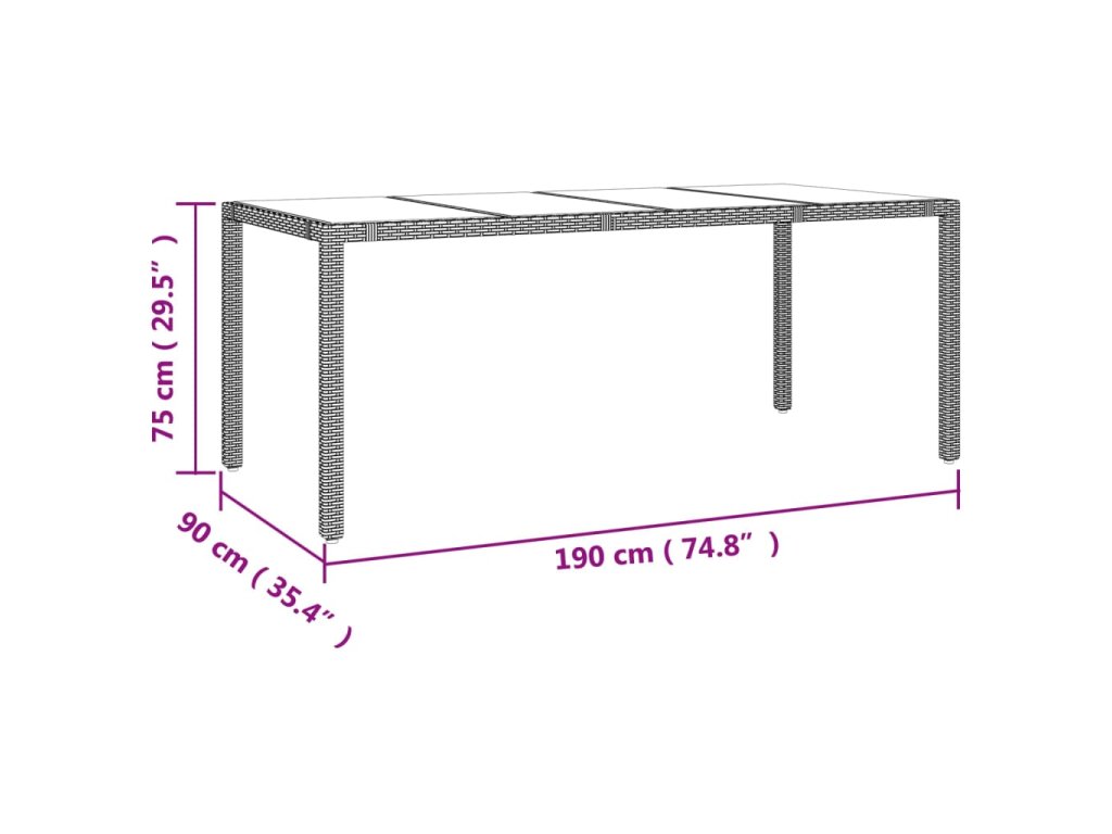 - Materiál: PE ratan, ocel, tvrzené sklo