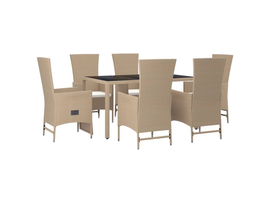 7dílný zahradní jídelní set s poduškami béžový polyratan 3157572