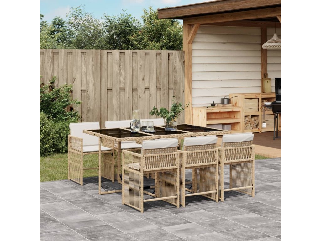 7dílný zahradní jídelní set s poduškami béžový polyratan 3211630