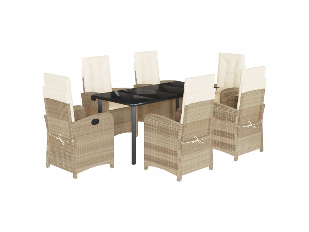 7dílný zahradní jídelní set s poduškami béžový polyratan 3212385
