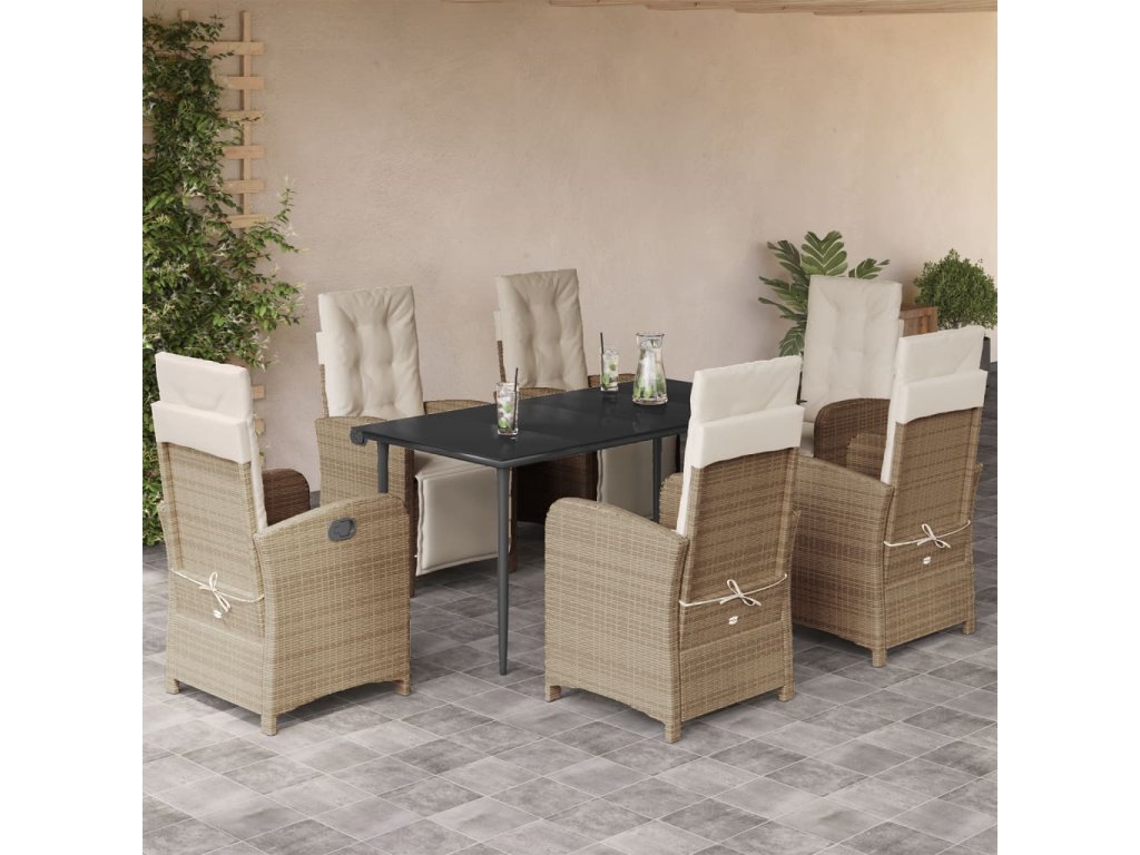 7dílný zahradní jídelní set s poduškami béžový polyratan 3212574