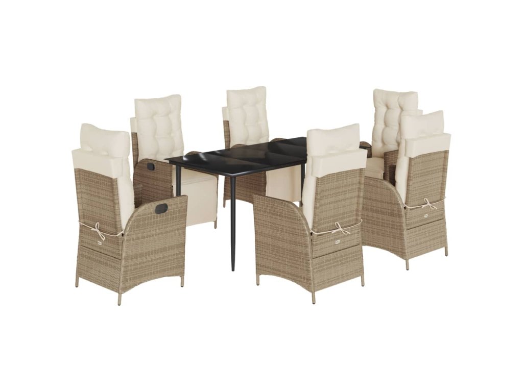 7dílný zahradní jídelní set s poduškami béžový polyratan 3213438