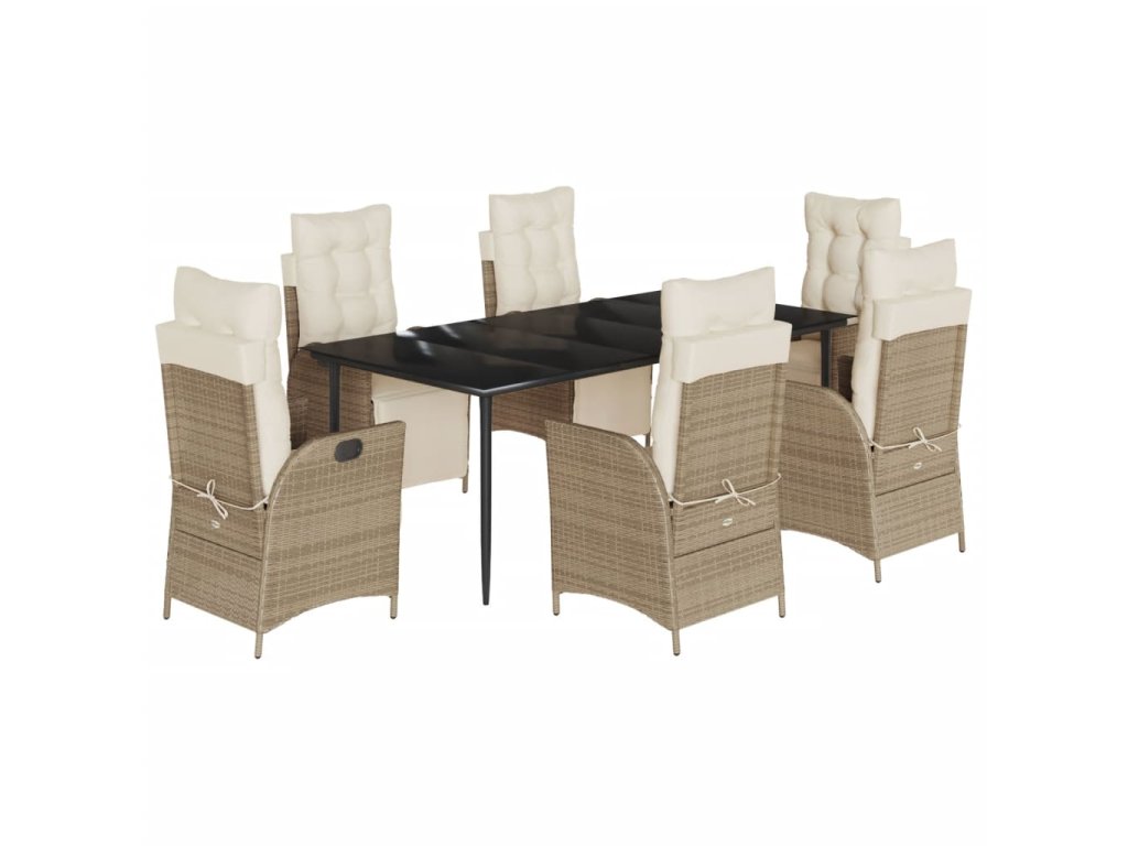 7dílný zahradní jídelní set s poduškami béžový polyratan 3213439