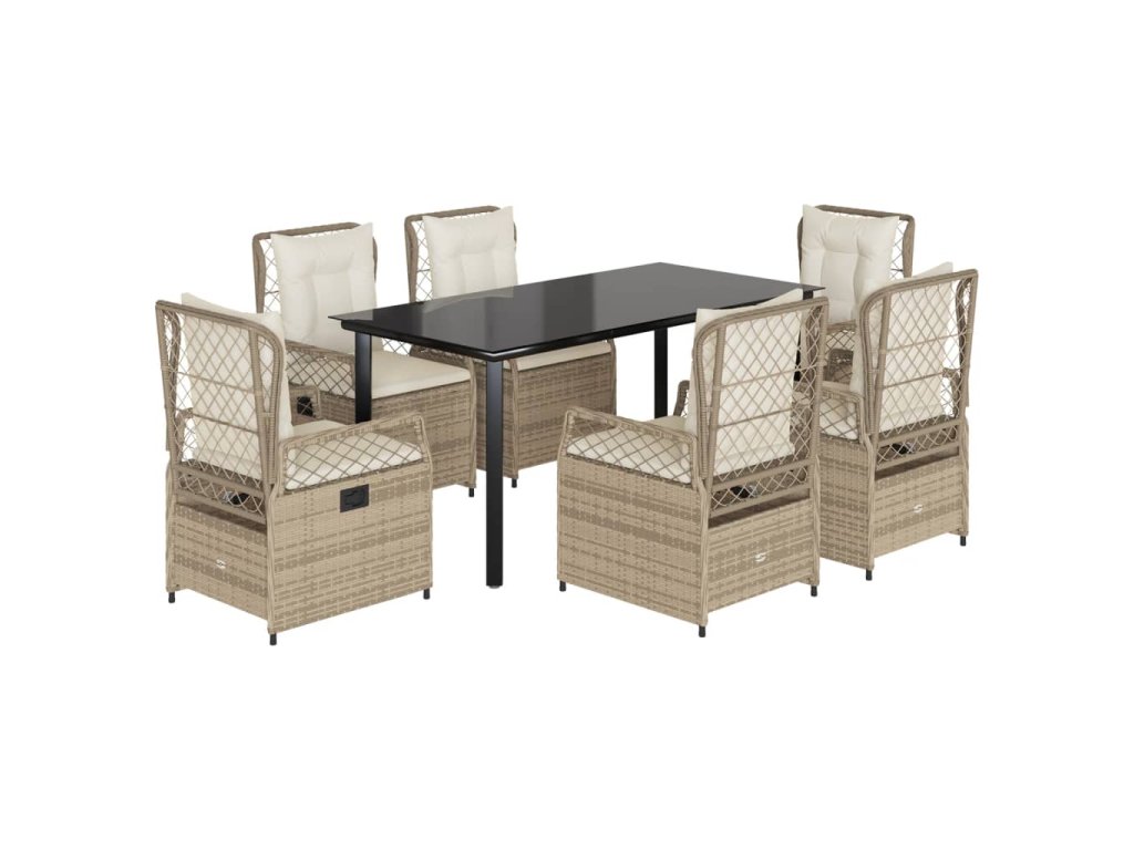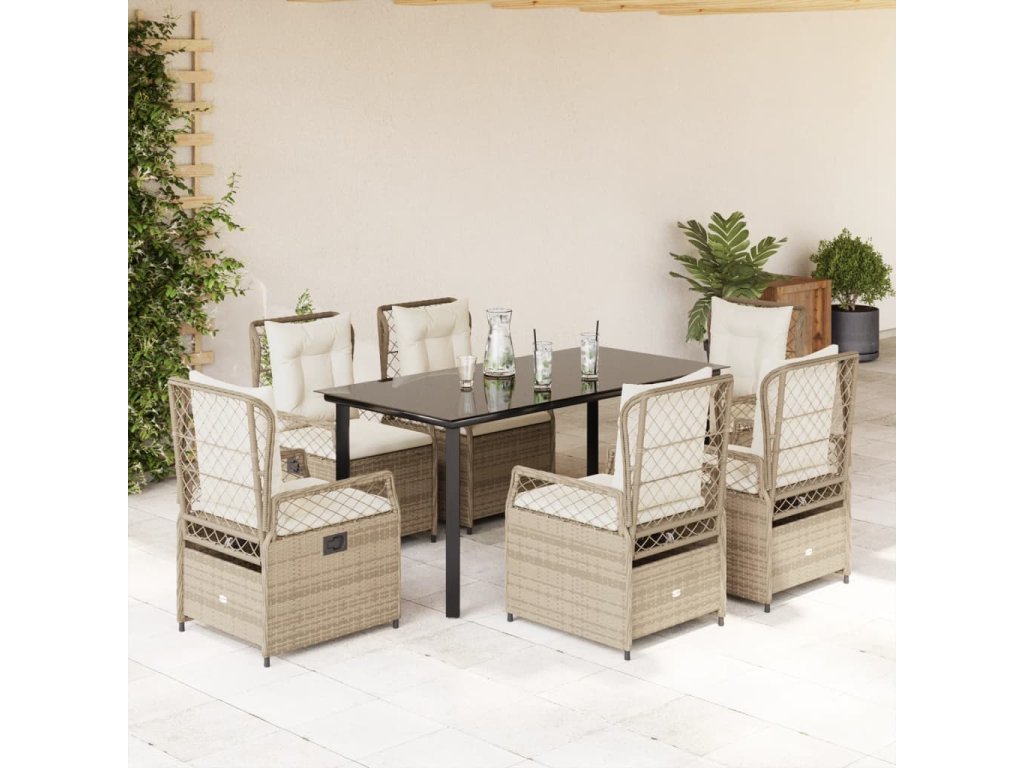 7dílný zahradní jídelní set s poduškami béžový polyratan 3263024