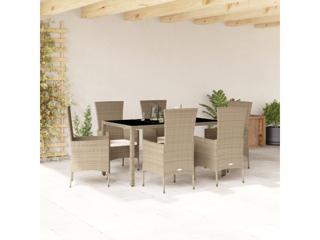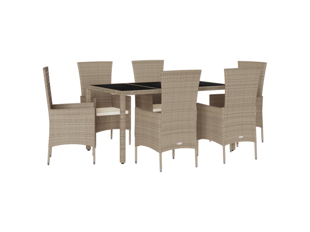 7dílný zahradní jídelní set s poduškami béžový polyratan 3277572