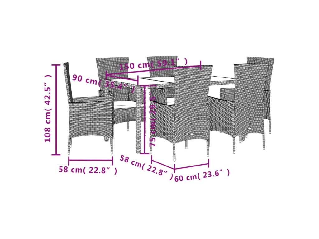 - Materiál: PE ratan, práškově lakovaná ocel, tvrzené sklo