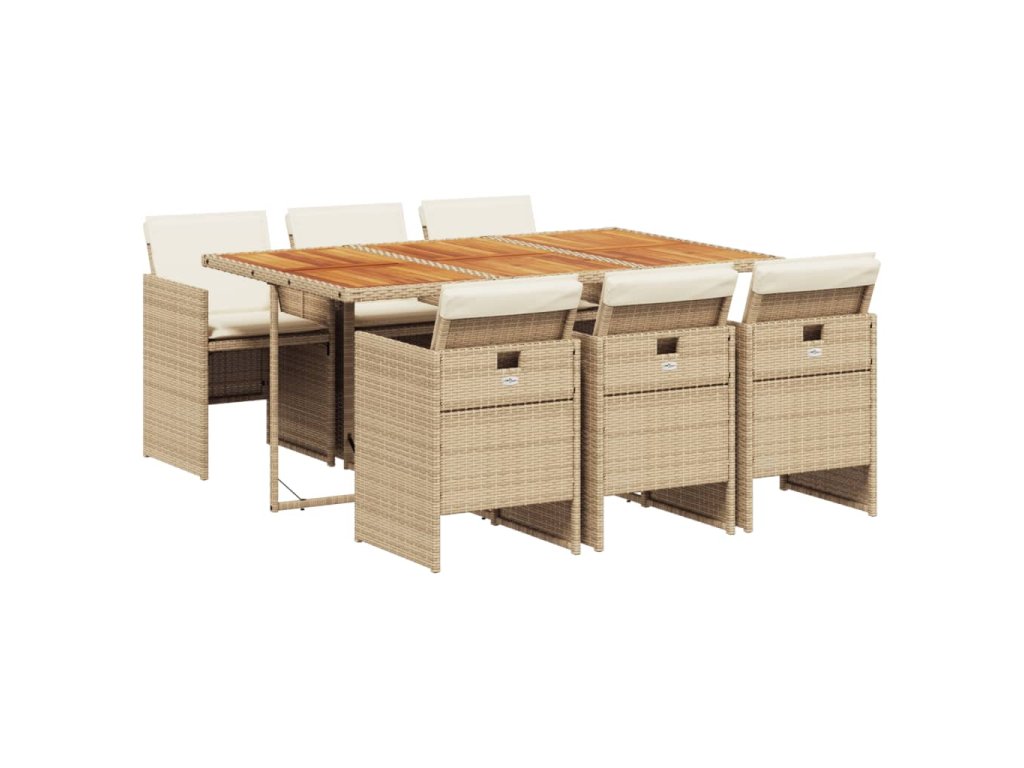 7dílný zahradní jídelní set s poduškami béžový polyratan 3277683