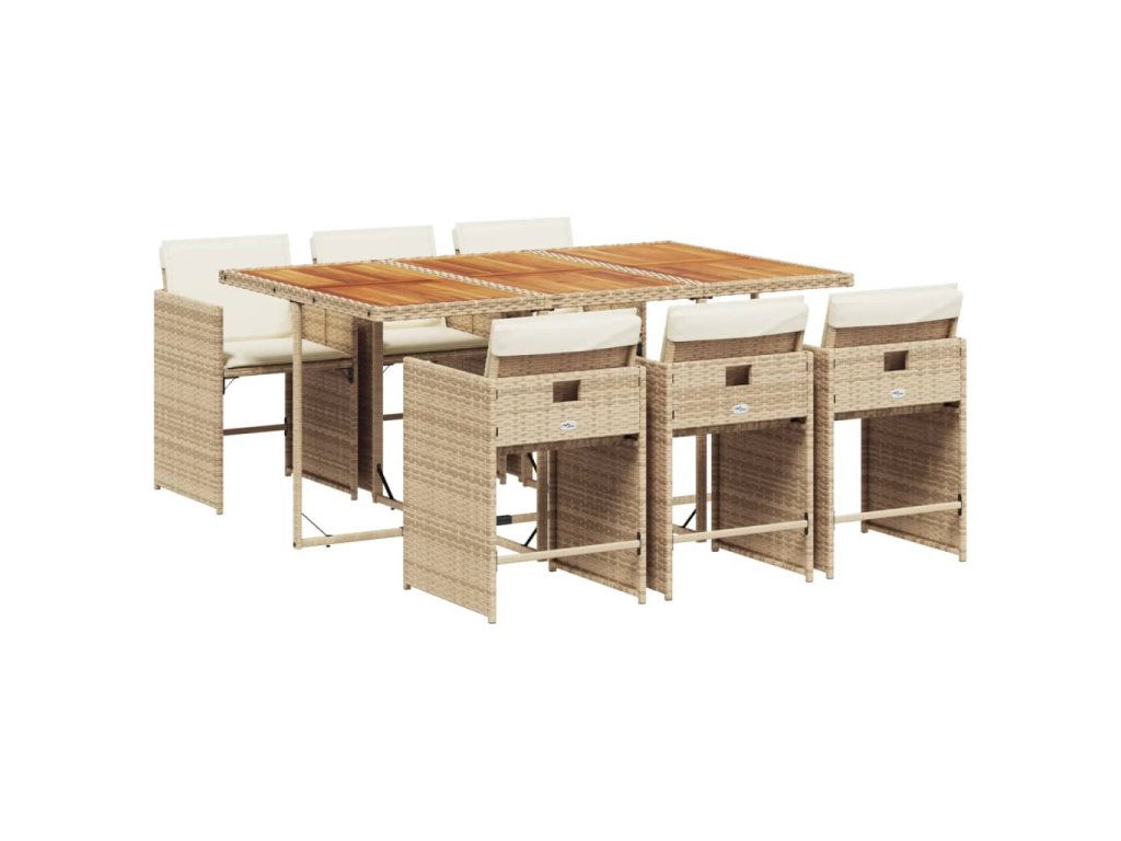 7dílný zahradní jídelní set s poduškami béžový polyratan 3277863