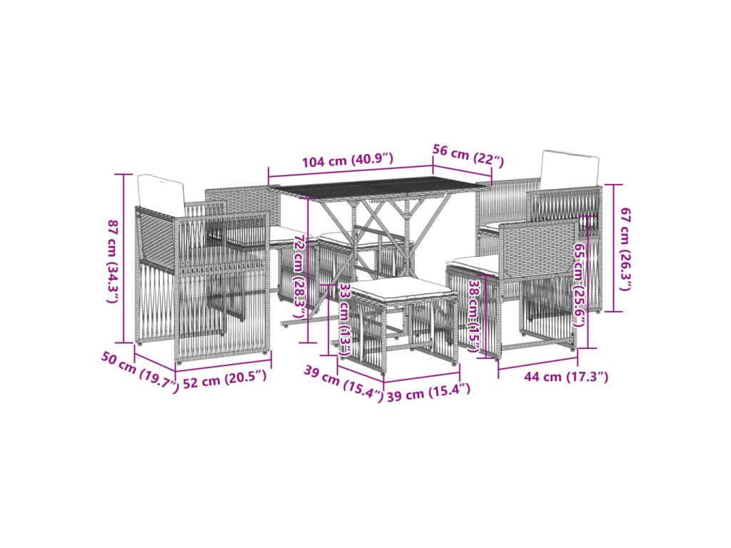 - Kompaktní skladování: Tyto zahradní židle a podnožky lze úhledně schovat pod stůl a ušetřit tak místo.