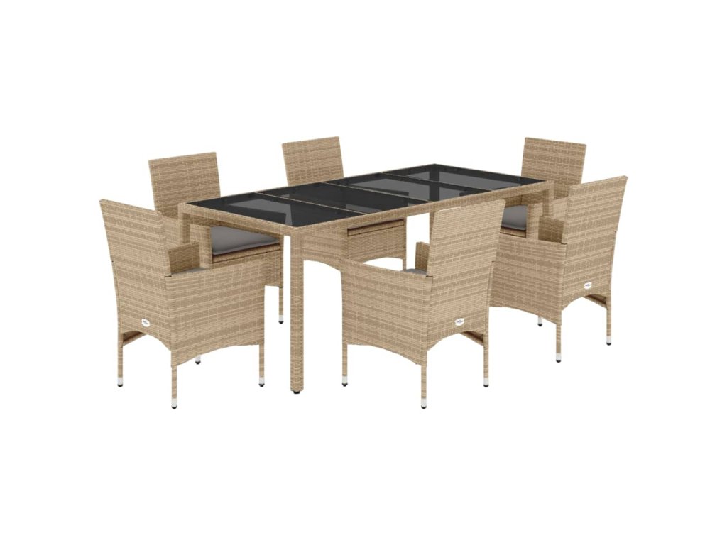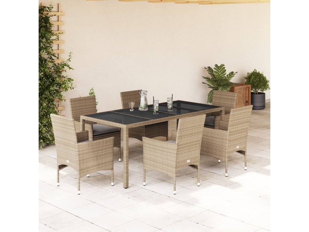 7dílný zahradní jídelní set s poduškami béžový polyratan a sklo 3278565
