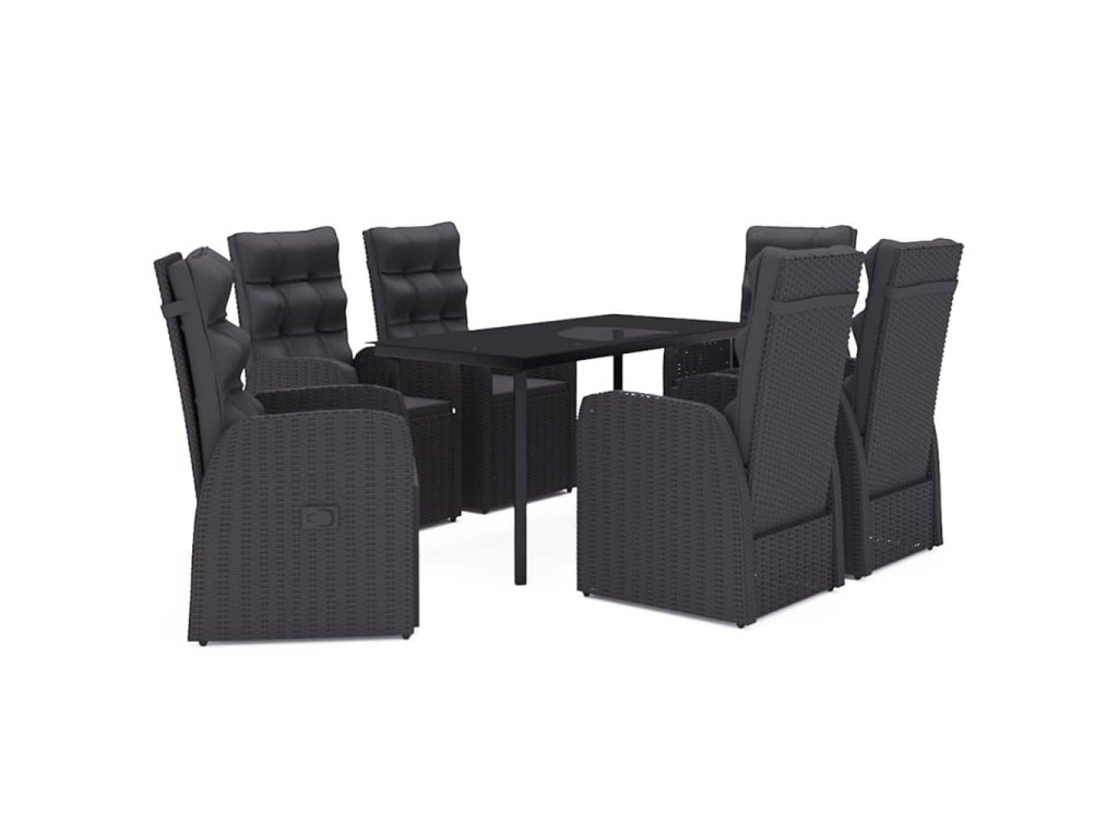 7dílný zahradní jídelní set s poduškami černý 3099499
