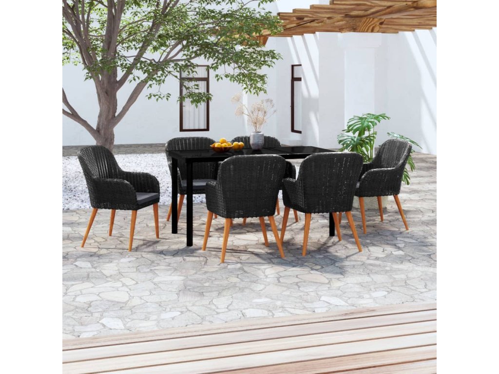 7dílný zahradní jídelní set s poduškami černý 3099508