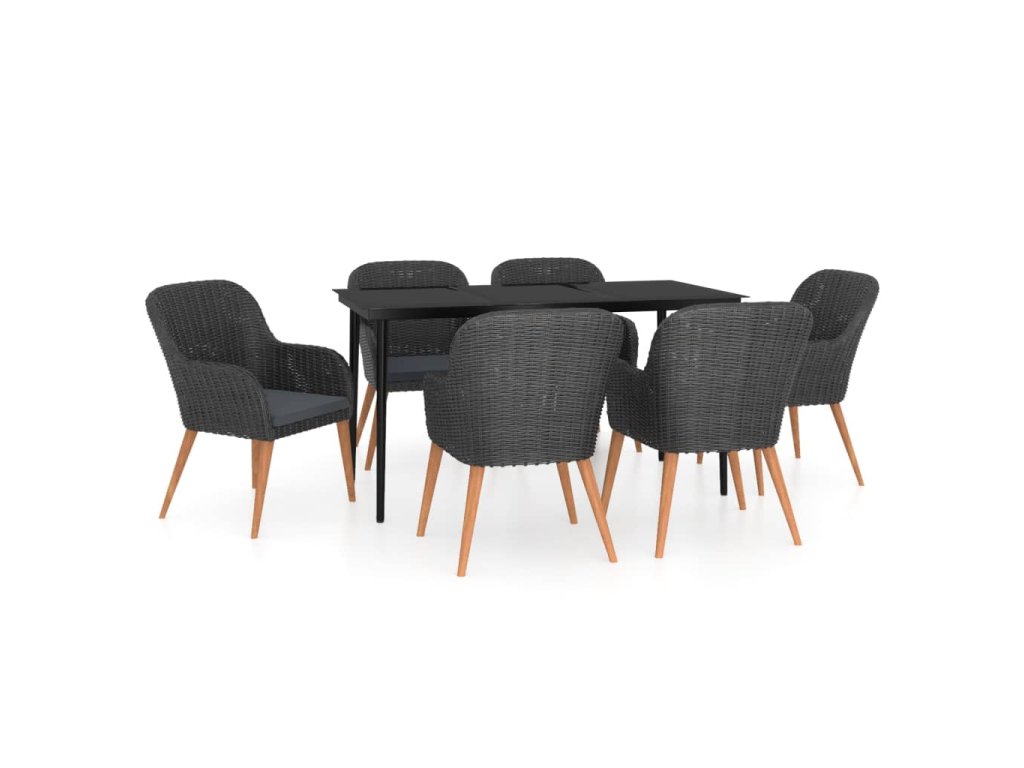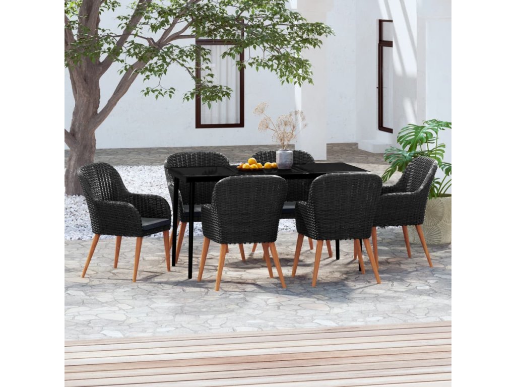 7dílný zahradní jídelní set s poduškami černý 3099520