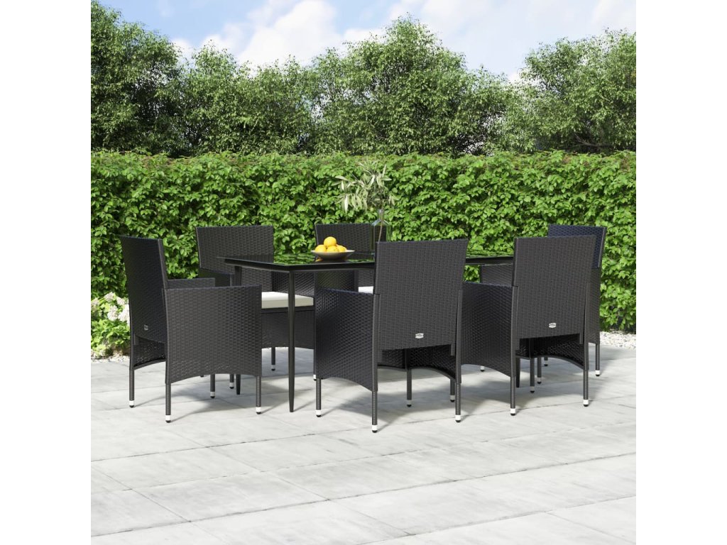7dílný zahradní jídelní set s poduškami černý 3156617