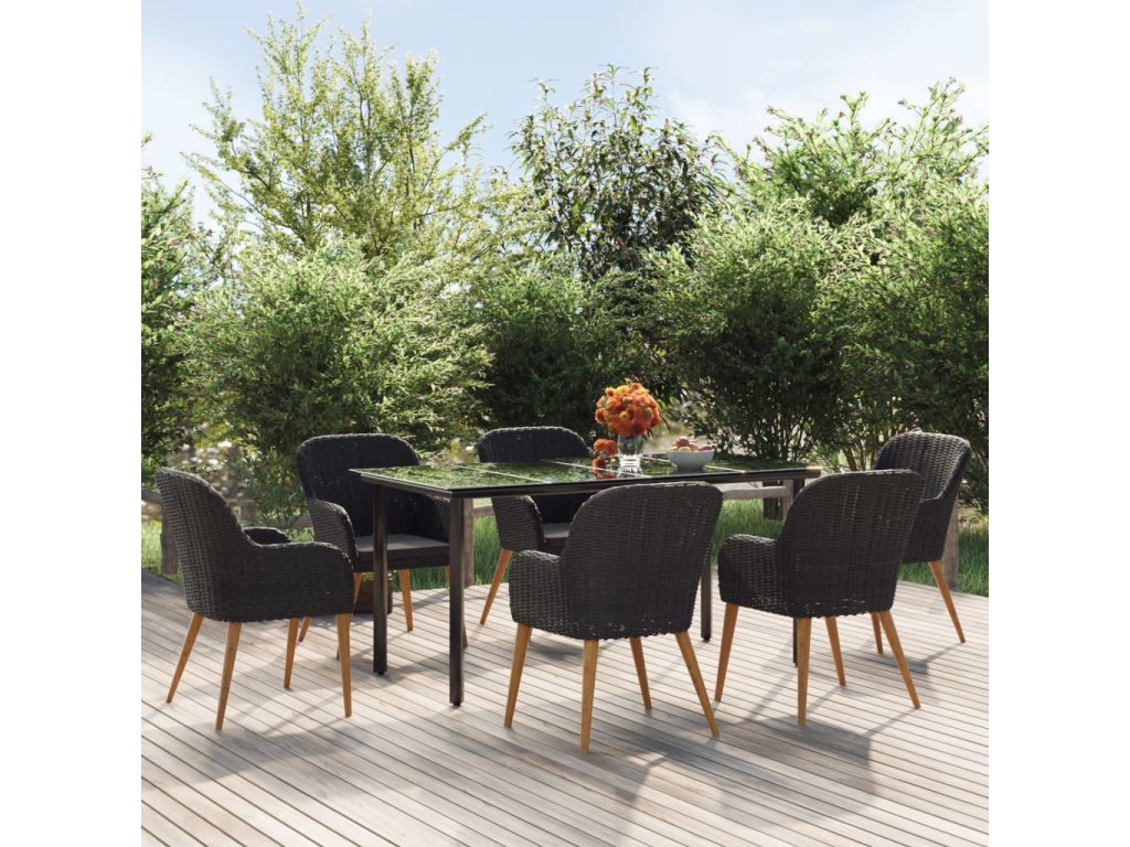 7dílný zahradní jídelní set s poduškami černý 3156719