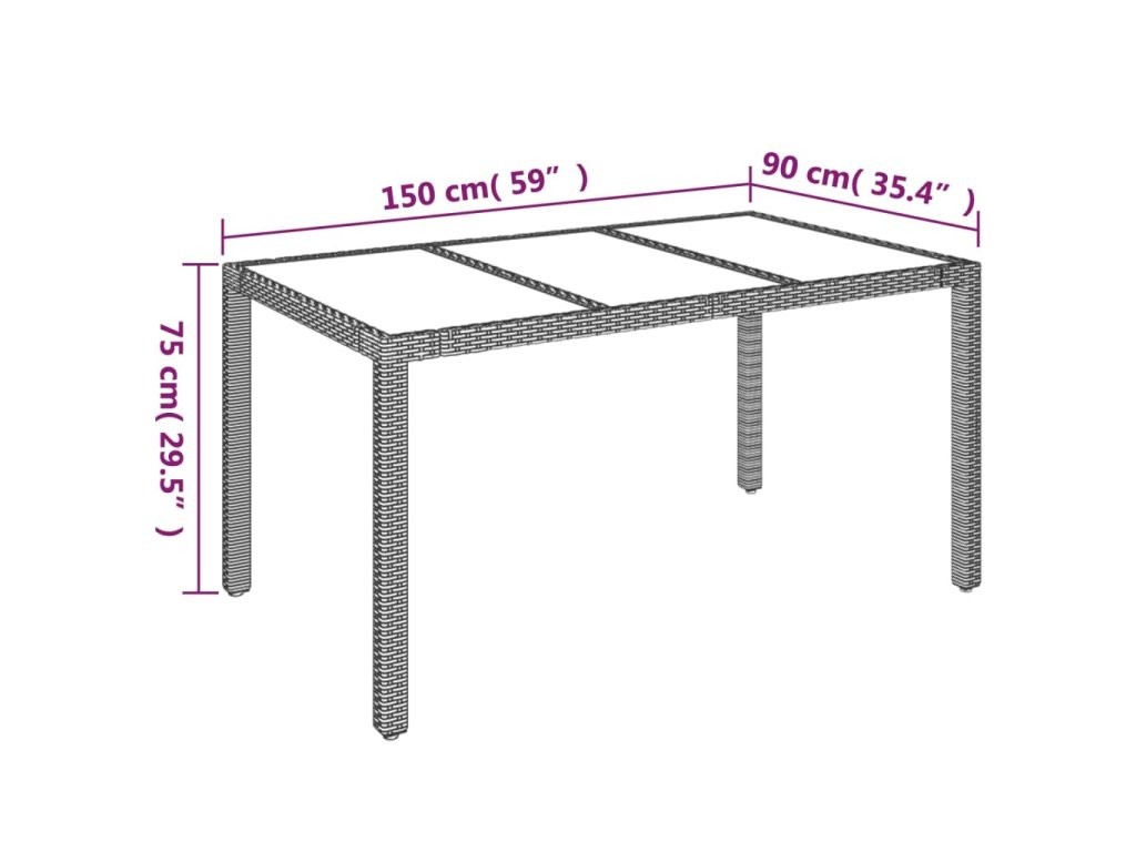 - Materiál: PE ratan, práškově lakovaná ocel, tvrzené sklo