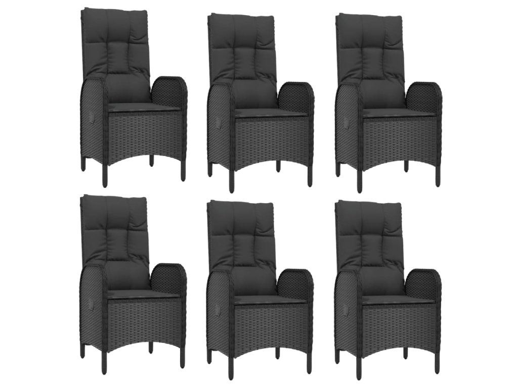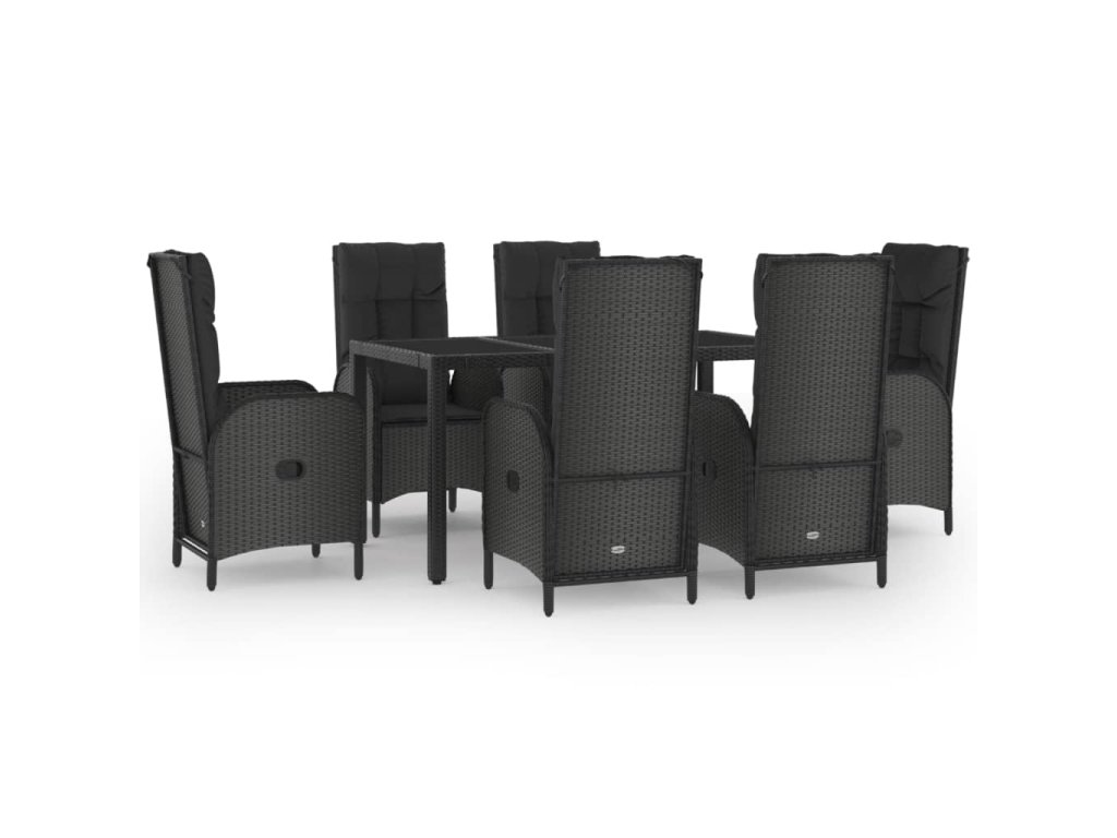 7dílný zahradní jídelní set s poduškami černý a šedý polyratan 3185056