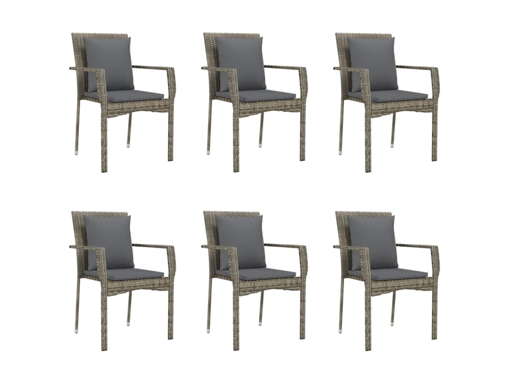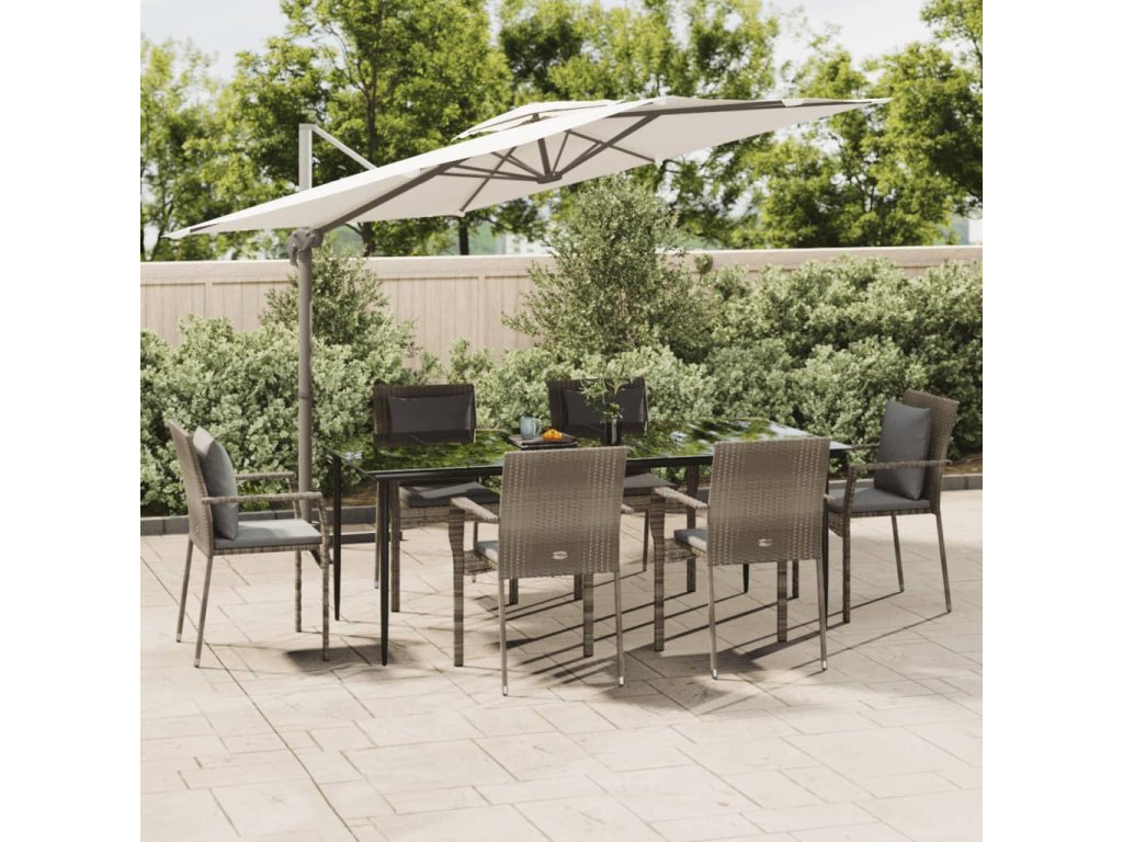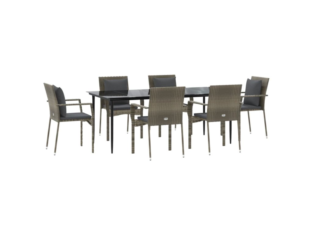 7dílný zahradní jídelní set s poduškami černý a šedý polyratan 3185105