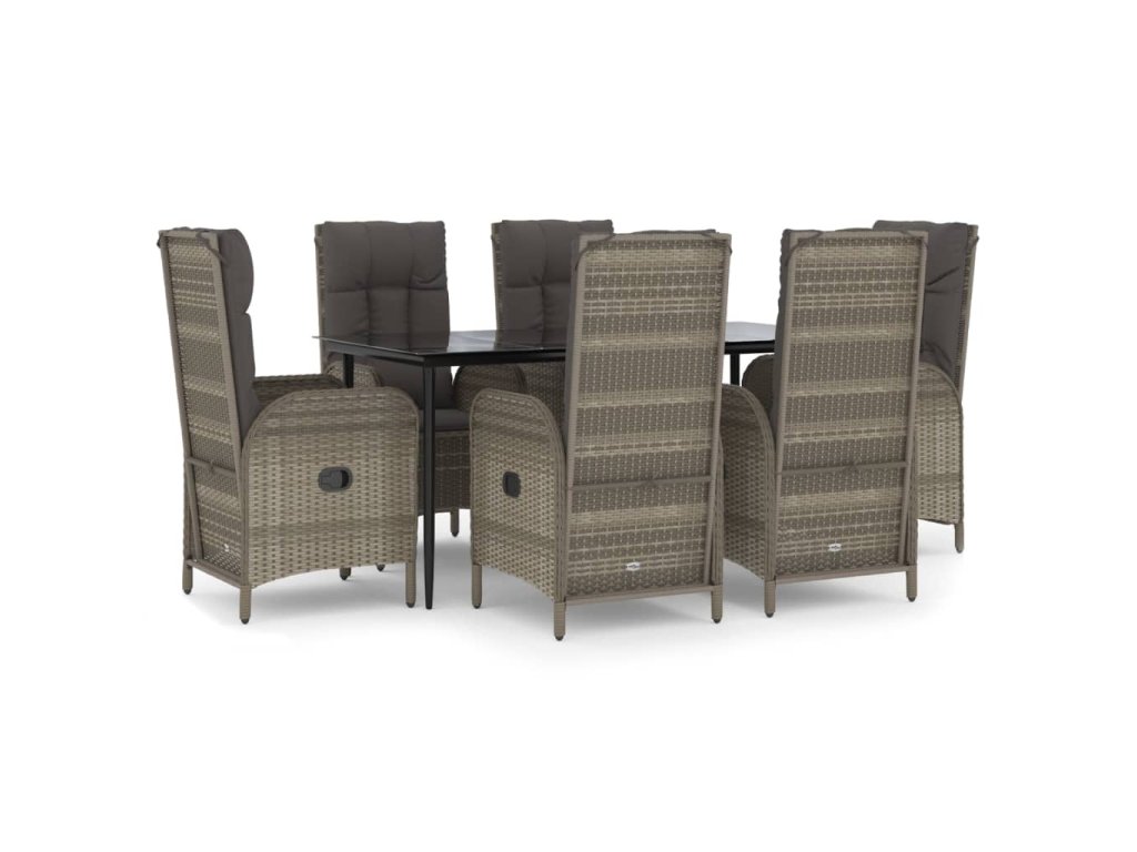 7dílný zahradní jídelní set s poduškami černý a šedý polyratan 3185182