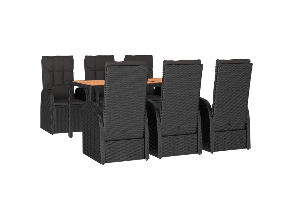 7dílný zahradní jídelní set s poduškami černý polyratan 3157601