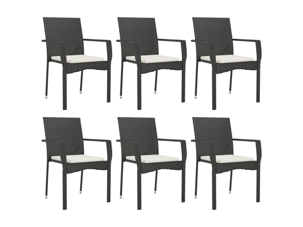 7dílný zahradní jídelní set s poduškami černý polyratan 3184990
