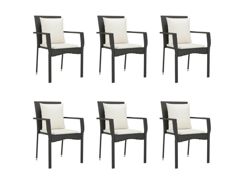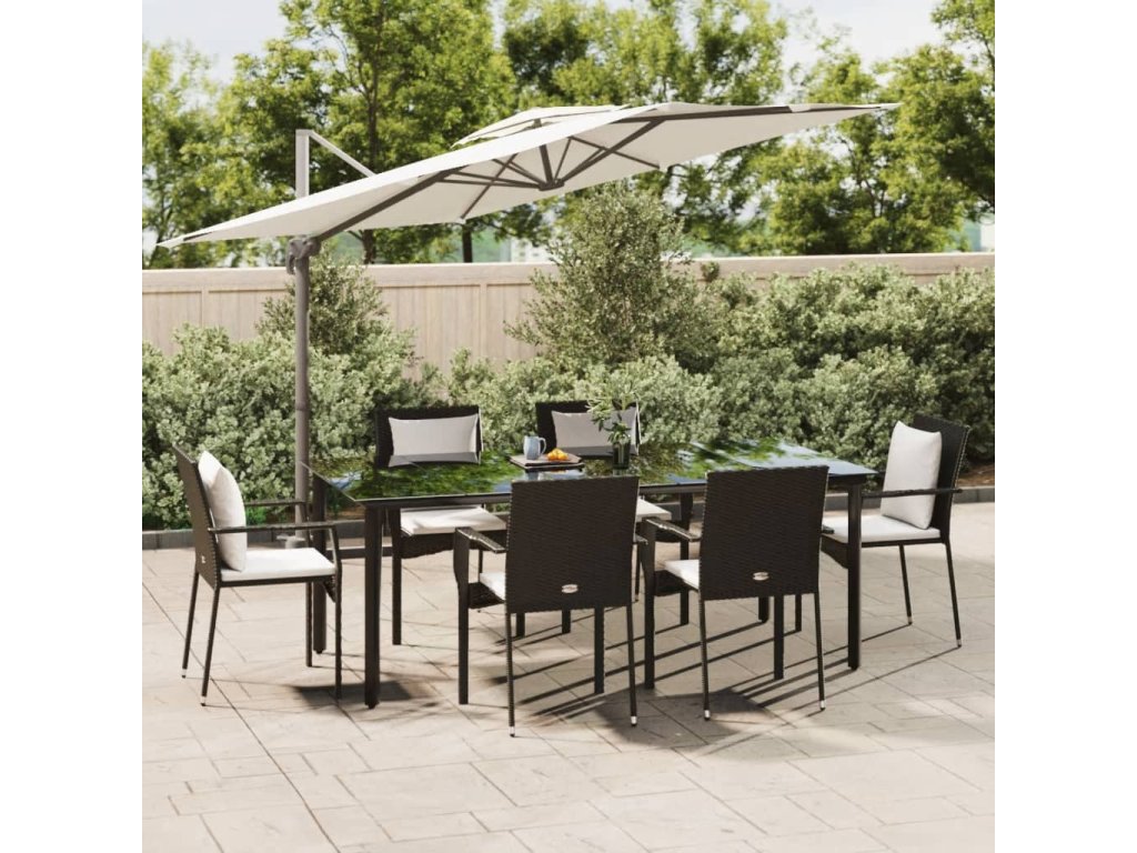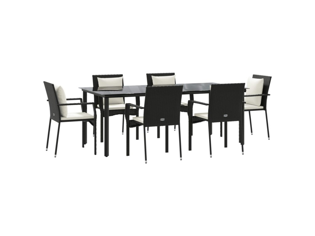 7dílný zahradní jídelní set s poduškami černý polyratan 3185111