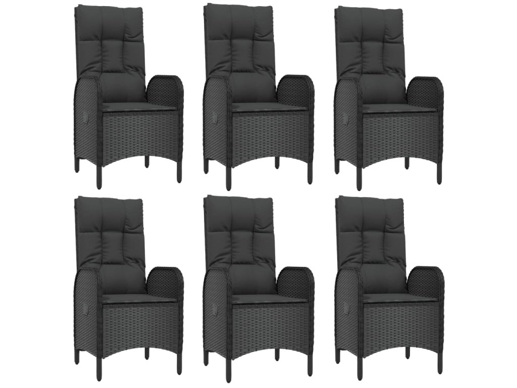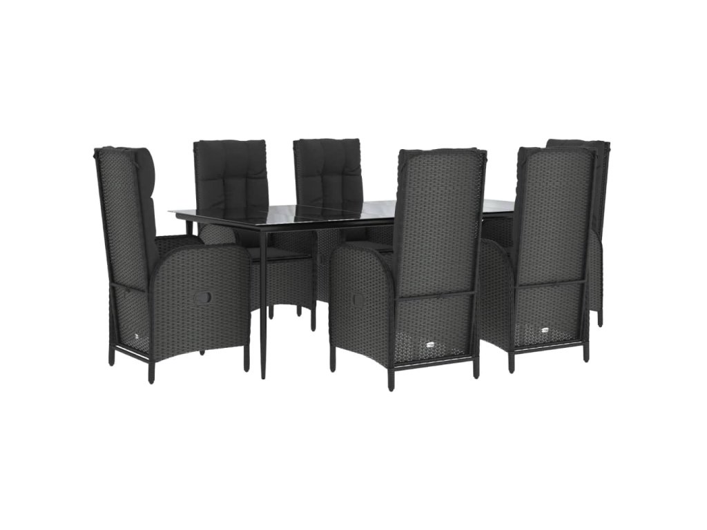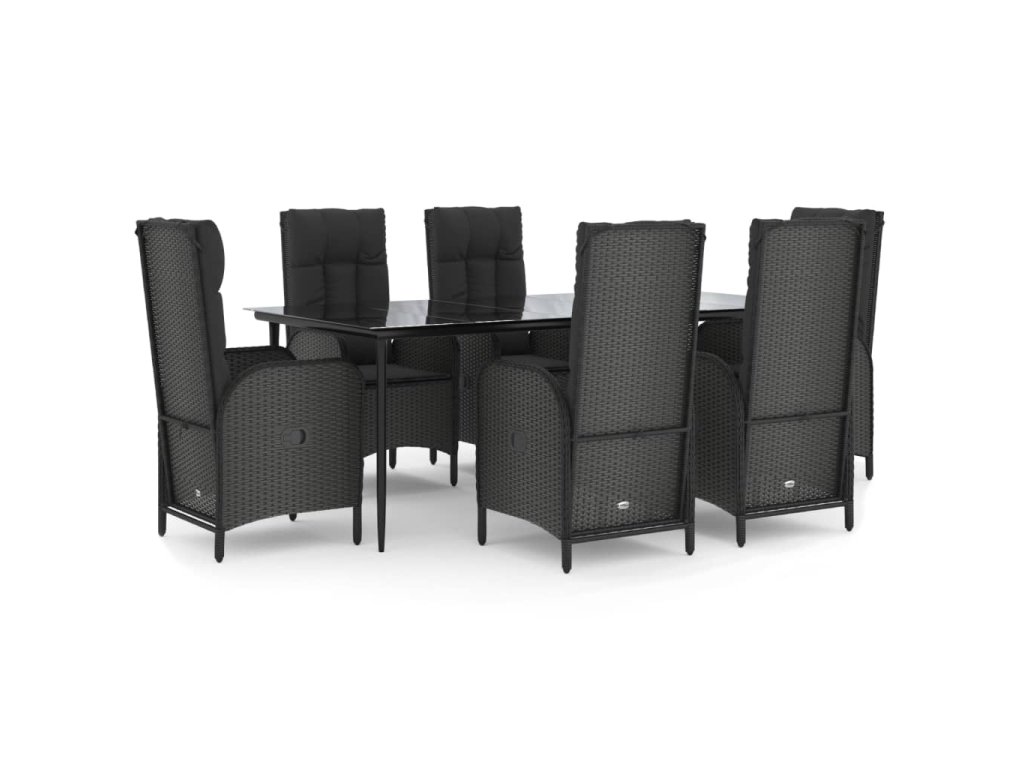 7dílný zahradní jídelní set s poduškami černý polyratan 3185173