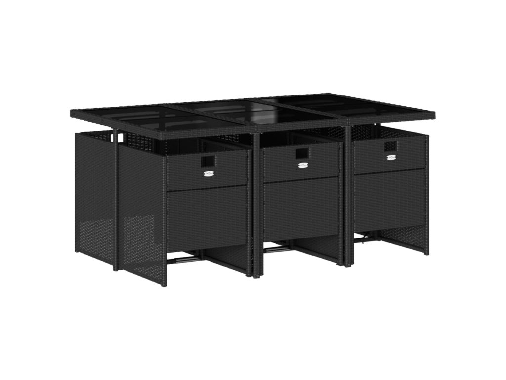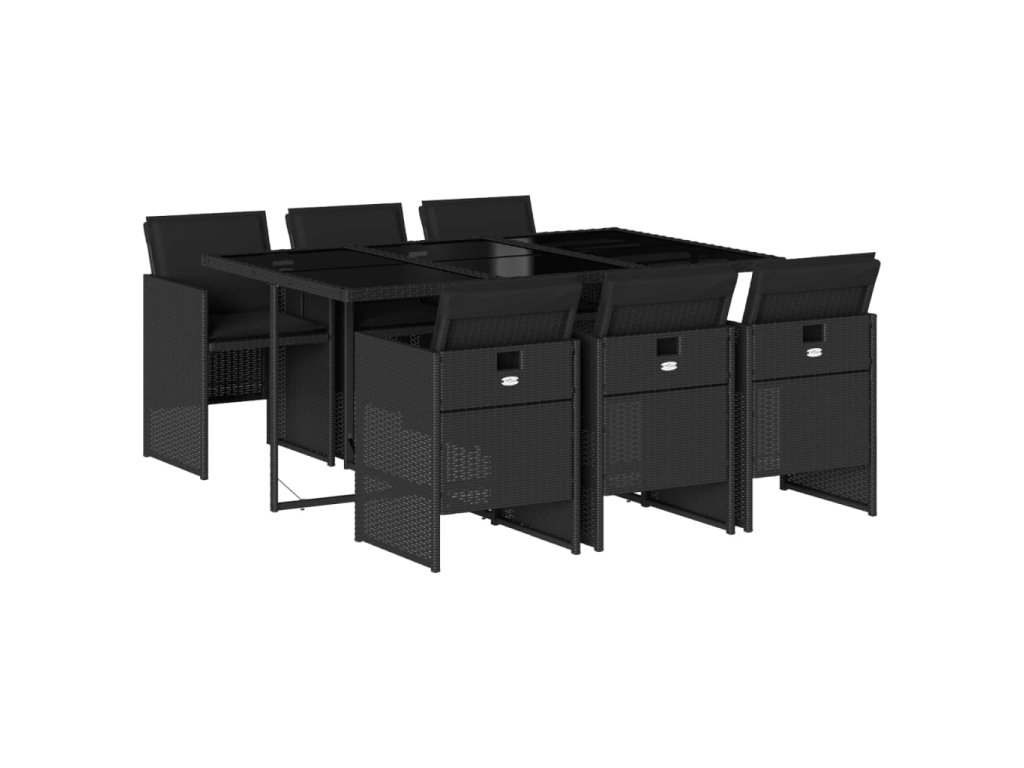 7dílný zahradní jídelní set s poduškami černý polyratan 3210547
