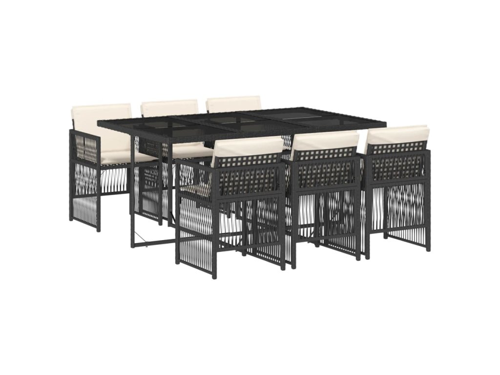 7dílný zahradní jídelní set s poduškami černý polyratan 3210906