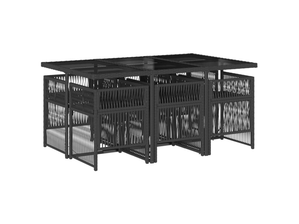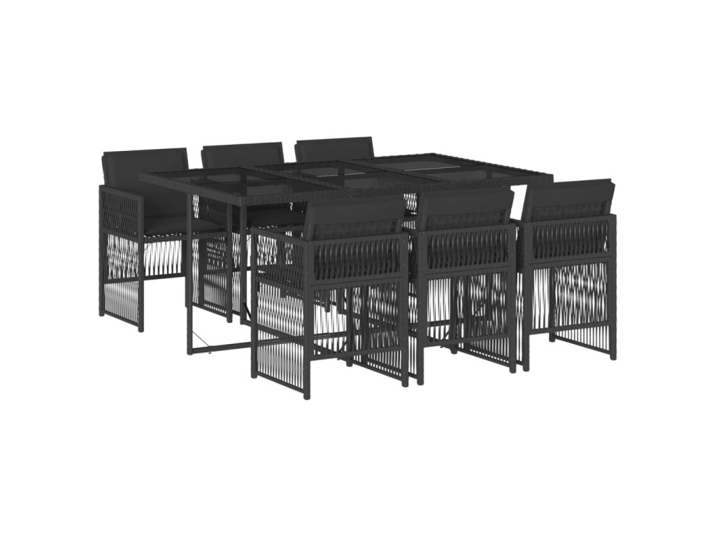 7dílný zahradní jídelní set s poduškami černý polyratan 3210907